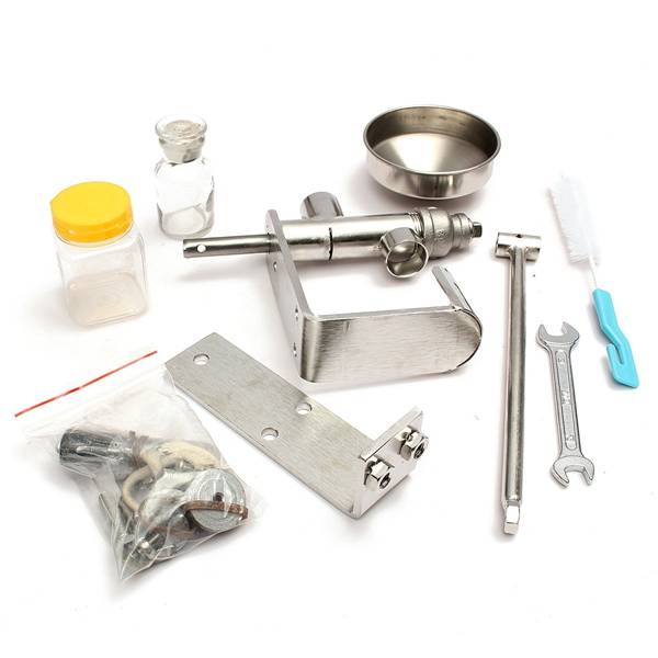 -Find a table-board right to use the oil mill, pressure gaskets with two long screw compress, reinforced with a wrench