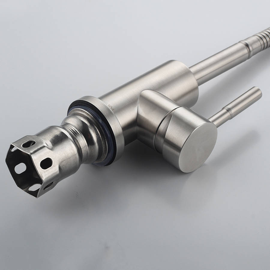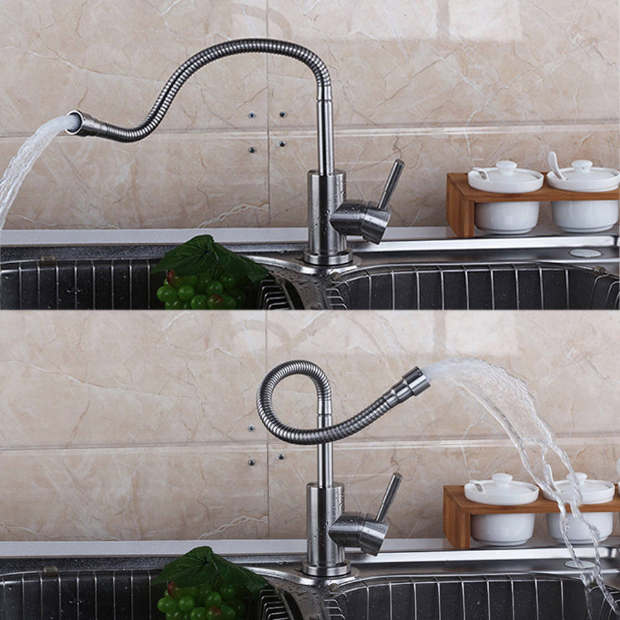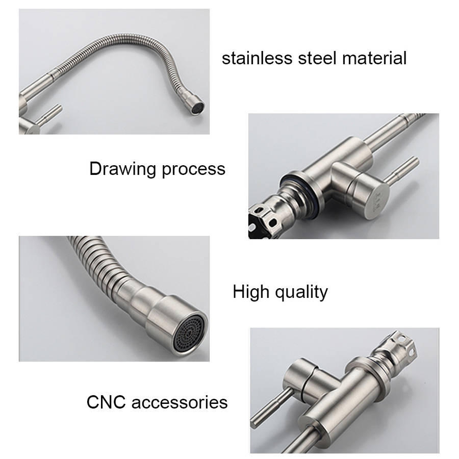 Specification: Name: Stainless steel kitchen faucet Function category: Mixing faucet Installation type: Vertical Material: Stainless steel Structure form: Single connection Working temperature: 0-60 degrees Applicable type: Kitchen faucet Opening method: Wrench type Seat diameter: 5cm Spool: Copper plated spool Surface treatment: Brushed Inlet and outlet pipe diameter: 4 points Net weight: 1280g Features: 1. Excellent material: It is made of excellent stainless steel and is durable. 2. Drawing process: surface drawing process, lasting as new. 3. CNC accessories: precision CNC lathe manufacturing, tight double pipe interface, easy to install. 4. Stylish design: The stainless steel kitchen faucet design makes your kitchen simple and fresh, easy to match with most sinks. 5. Easy to operate: Single handle design integration, high arc 360 degree rotary nozzle provides a full range of cleaning channels. 6. Easy to maintain: Excellent anti-corrosion and rust-proof surface prevents dirt from sticking to the surface of the faucet. It is enough to clean the faucet with a cloth in daily use. Package Included: 1* Faucet