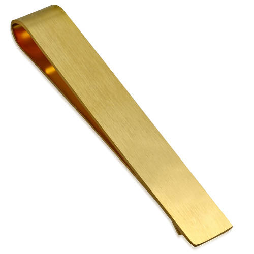 Item Description: Engravable,gold plated matte finish Men's Tie Slider/Clip in durable Stainless Steel. Approx 6.5 x1.0cm CCR200