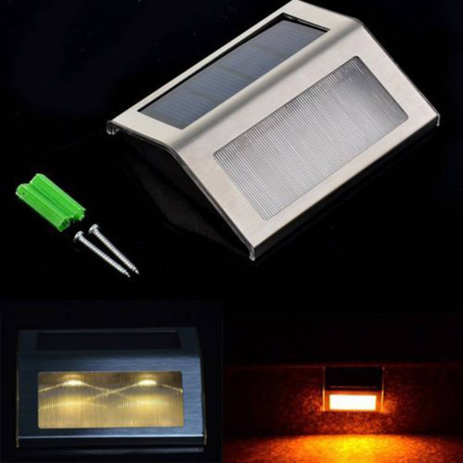 1 x New Outdoor Solar Power 2 LEDS Bright Light Deck Garden Pathway Stairs Lamp
