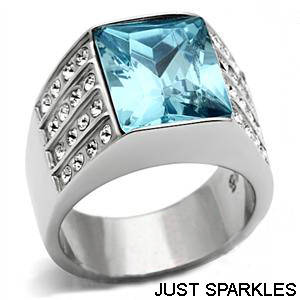 STAINLESS STEEL SIMULATED BLUE TOPAZ LADIES RING
