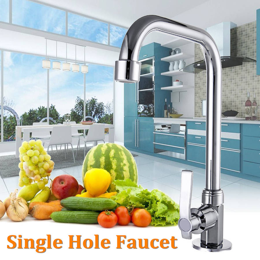 Stainless Steel Single Hole Faucet Kitchen Wash Basin Rotate Water Taps Mixer