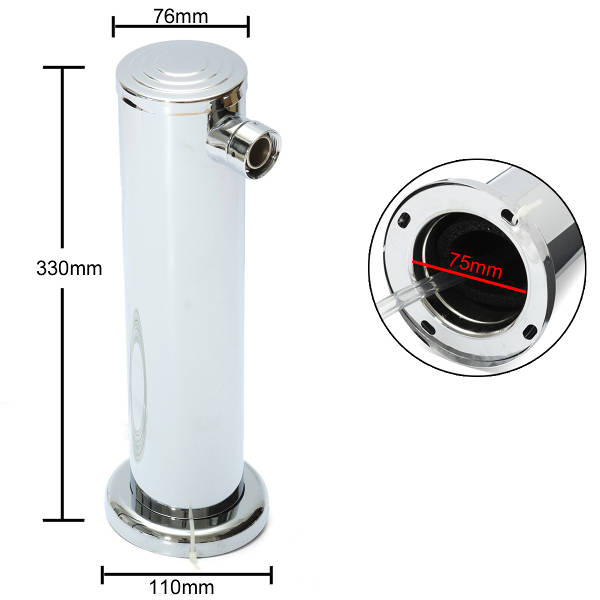 Package weight: 1.54 kg Description: Stainless Steel Single Tap Faucet Draft Beer Tower For Bar Homebrew Kegerator Specifications: 1.Color: Silver 2.Material: Stainless Steel+Plastic 3.Size: 330x76mm 4.Tower Diameter: 75mm Features: Draft beer towers are a simple and economical solution for your home and bar. Package Included: