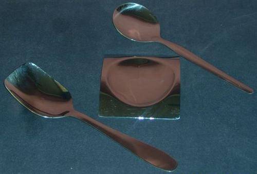 1 x Square spoon, 1 x Round spoon and spoon rest in stainless steel. Postage charged at R30-00.