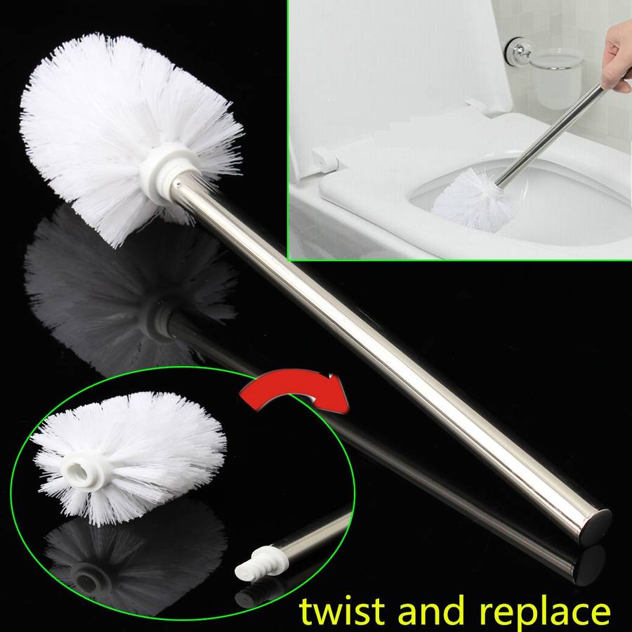 Stainless Steel WC Bathroom Cleaning Toilet Brush White Head Holders Cleaning Brushes