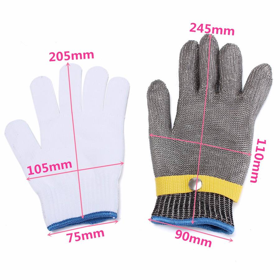 Color:Grey+White Material: Steel Wire Protection grade: 5 White Glove Size: Length(from Middle finger to wrist):20.5 cm Width(metacarpus):10.5 cm Grey Glove Size: Length(from Middle finger to wrist):24.5 cm Width(metacarpus):11 cm