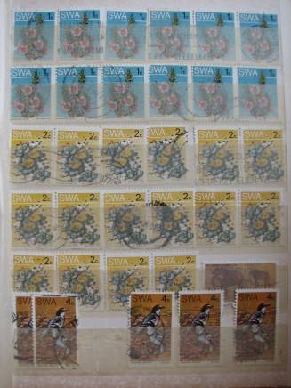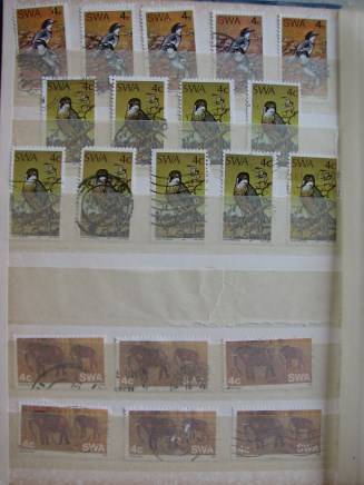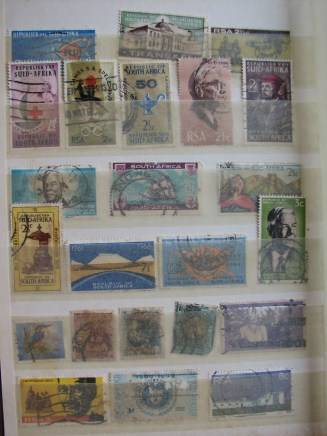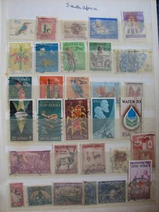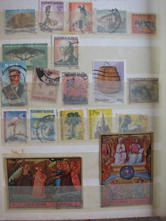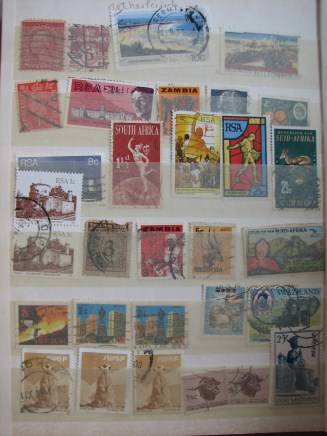 Stamp Album x 600 stamps Germany,SA SWA etc - see pics -good, some hinged, some unmounted