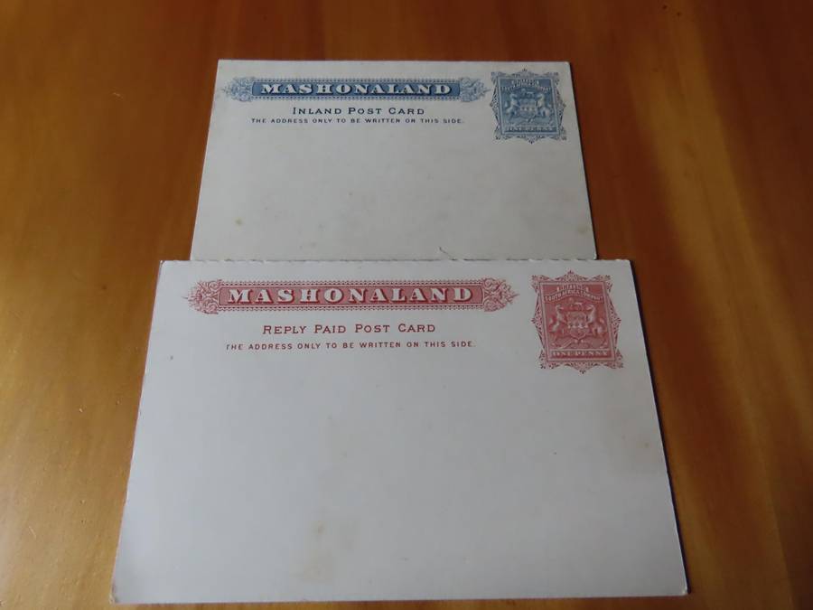 Here we have Stamps - Mashonaland - British South Africa Company - 2 Postcards 1 Reply Paid 1d each Unused