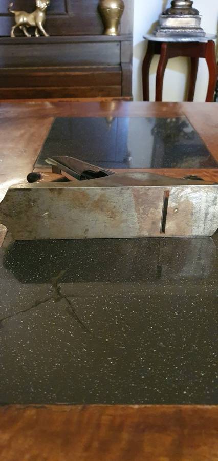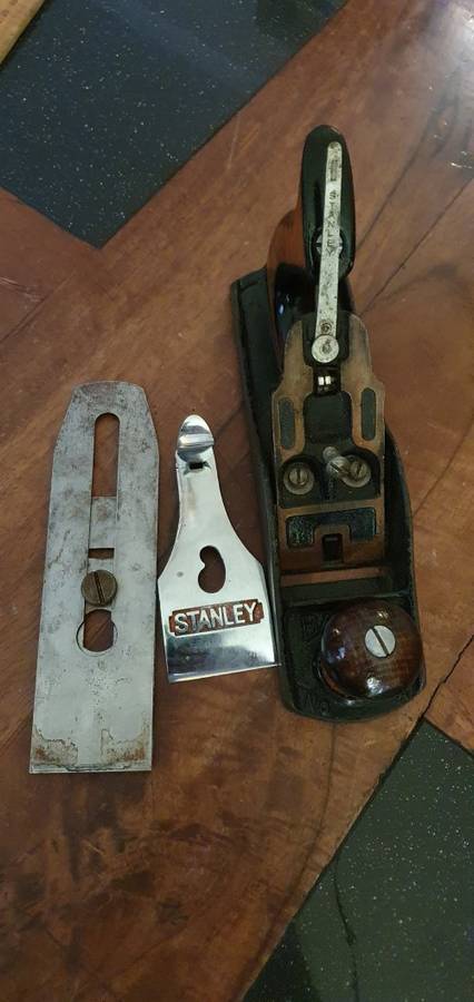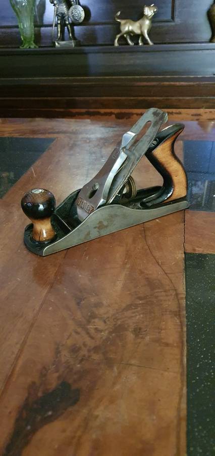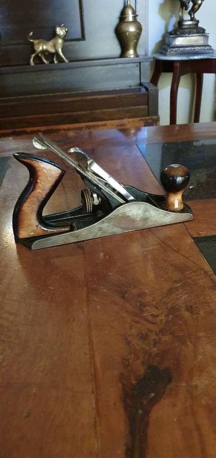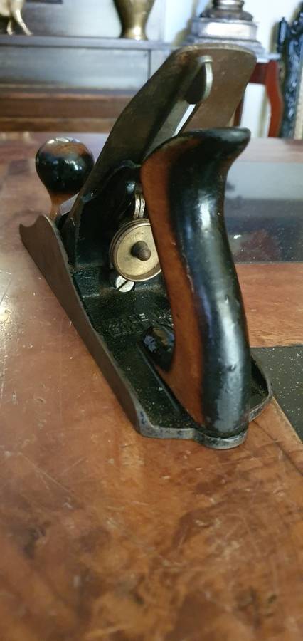 The wood handles were varnished and the front handle has a small split in the wood, other than that this planer is in a good usable condition.