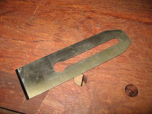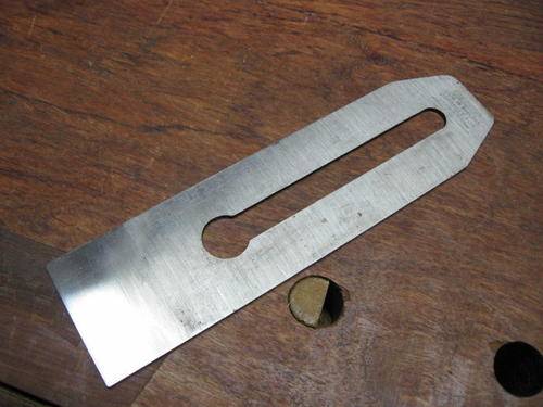 Fits a size 4 or 5 plane and is in practically unused condition with factory machine marks still visible. Cutting edge side was polished and sharpened straight, not cambered. Measures about 50mm wide (2 inches). Please see pictures.