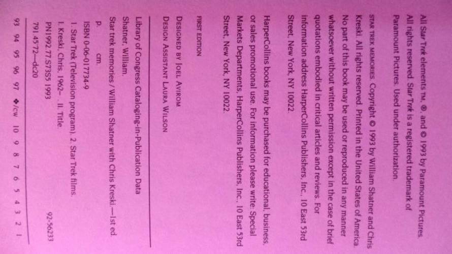 STAR TREK MEMORIES: William Shatner with CHRIS KRESKI - 1ST EDITION - Hardcover in Super Condition*