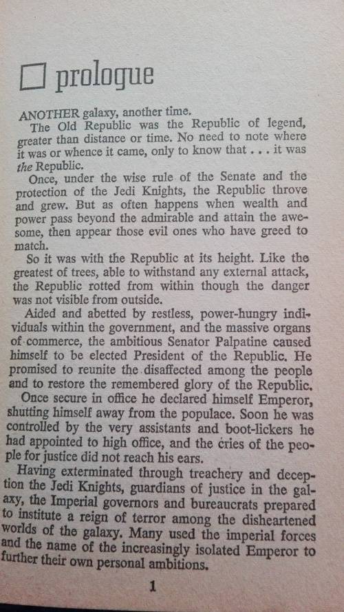 PROLOGUE FROM STAR WARS ADVENTURES OF LUKE SKYWALKER BELOW ;
