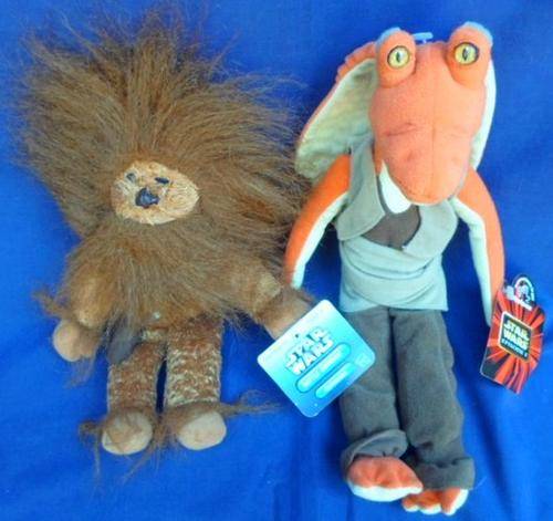 26CM AND 32CM TALL RESPECTIVELY WE HAVE 'CHEWBACCA' AND 'JAR JAR BINKS' FROM STAR WARS EPISODE 1. BOTH IN EXCELLENT CONDITION WITH ORIGINAL TAGS AND VERY COLLECTABLE SHIPPING R45 REFER IMAGES