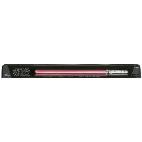 A single blade ignites with realistic power-up; and power-down lights effects; including authentic lightsaber sound effects digitally recorded from the movie. Features motion sensor controlled sound effects: power-up; power-down; idle; movement; and clash. Durable yet light chrome plated aluminum body looks and feels like a real lightsaber. Sturdy polycarbonate blade is permanently attached to the hilt. Display stand included. Uses 6 - ""AAA"" batteries; not included. Measures approximately 3 1/2 feet long. This is an officially licensed STAR WARS collector's item.