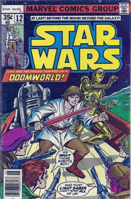 "Doomworld!" Written by Archie Goodwin. Art by Carmine Infantino and Terry Austin. While searching for a new location of the Rebel's set up shop, Luke Skywalker crash landed on a dangerous world of death and betrayal. Can this young hero hope to survive on Doomworld? Meanwhile, Han Solo attempts to bluff Crimson Jack, one of the galaxy's deadliest space pirates.