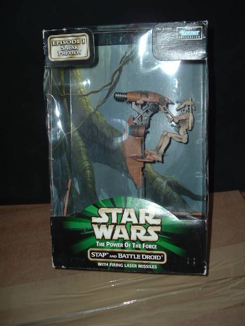 KENNER. STAR WARS, THE POWER OF THE FORCE. STAP AND BVATTLE DROID. GOOD CONDITION. BOX HAS SOME SHELF WEAR. SHIPPING R50 INSURED VIA POST OFFICE. WE ALSO DO POSTNET TO POSTNET. THANKS FOR STOPPING BY. PLEASE ASK IF YOU NEED MORE INFO.