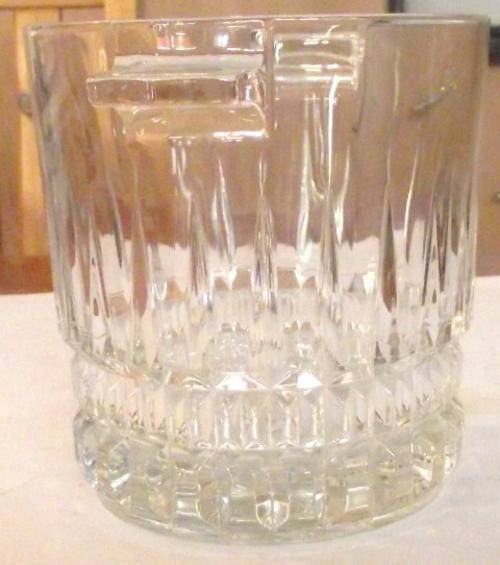 ICE BUCKET IS IN LOVELY CONDITION - A GENEROUS AMOUNT OF ICE CAN BE HELD. NICE FLUTING TO BODY AND GOOD HANDLES TO GRIP WITH. STARBURST PATTERN ON BASE.