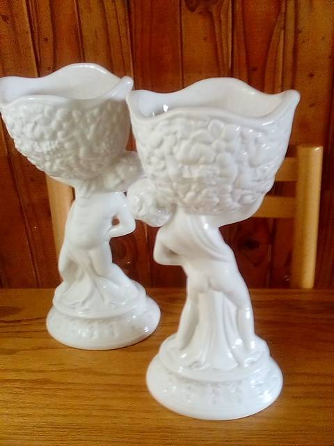 Stark White Figurine with Bowl - Stamped at the Bottom