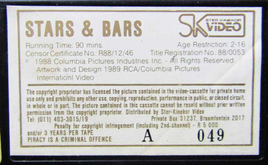 Stars and Bars - Daniel Day Lewis - Movie VHS Tape (1989).