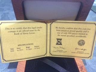 $$ Clearance $$ All must GO! $$ MANDELA SierraLeone 2004 gold $500 1oz $$ Clearance $$ All must GO! $$NOT TO BE MISSED! |