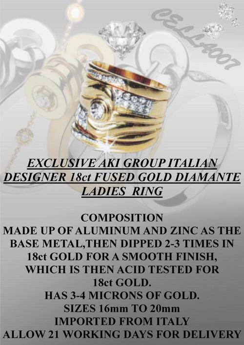 START VALENTINES SHOPPING ! EXCLUSIVE IMPORTED AKI DESIGNER FUSED 18ct GOLD DIAMANTE RING