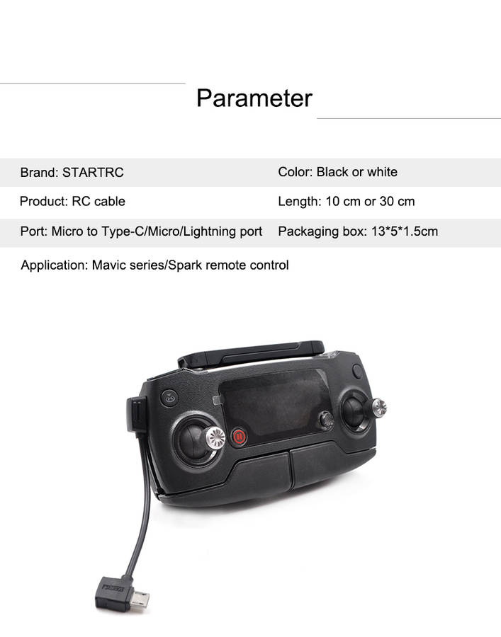 | Product | STARTRC 10cm Remote Control Cable for DJI Mavic mini/ Mavic Air/ Mavic Pro/ DJI Spark |