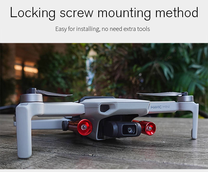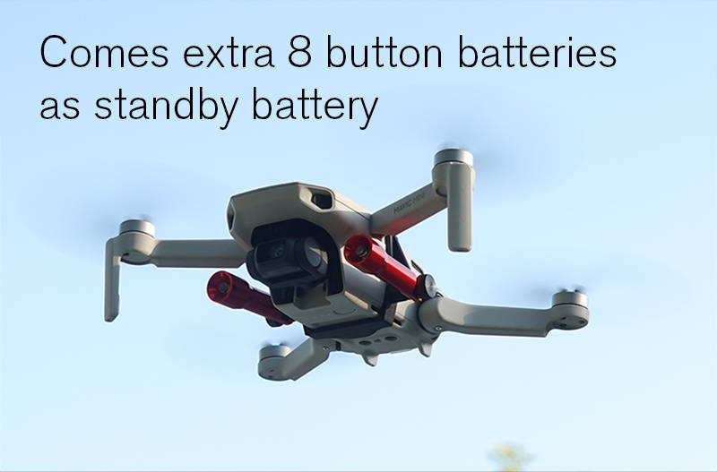 Description: Brand Name: STARTRC Item Name: LED Night Flight Fill Light Material: Aluminum Alloy/PLA Color: Red Battery: AG3 Button Battery Battery Capacity: 35-38mAh/PC Using Time: About 12hours (brightness from strong to weak) Net Weight: 42g Package Size: 8*8*4cm Package Weight: 68g Usage: for DJI Mavic Mini RC Drone