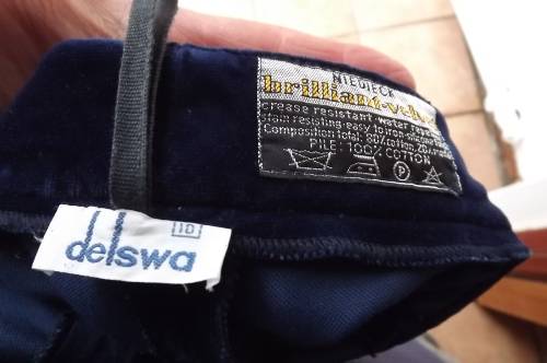 State of the art navy DELSWA pants in brilliant velvet.Size 32/8.100% cotton no stretch.