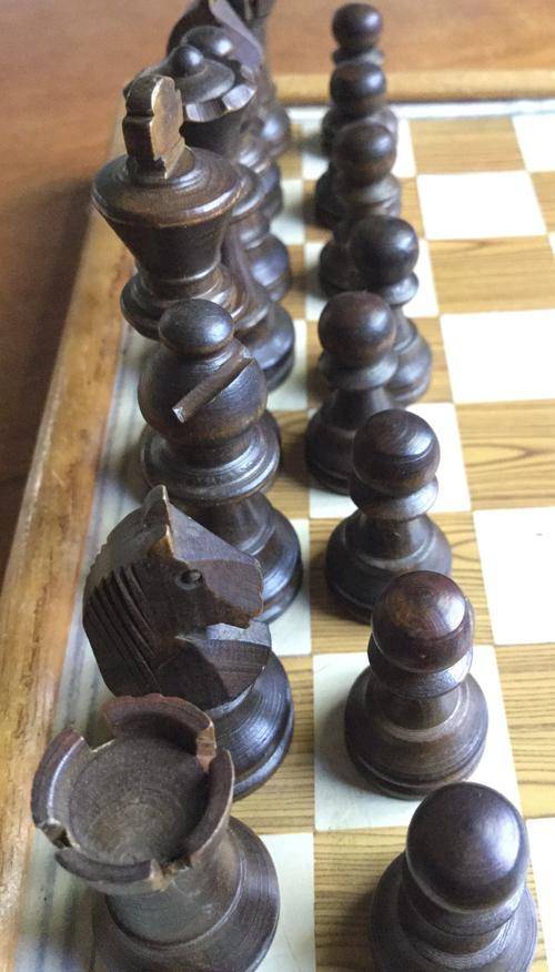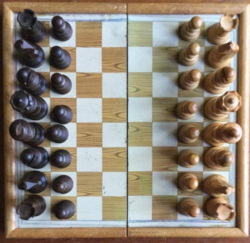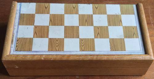 Staunton style magnetised wooden pieces, in case opens with board 195 x 195 mm