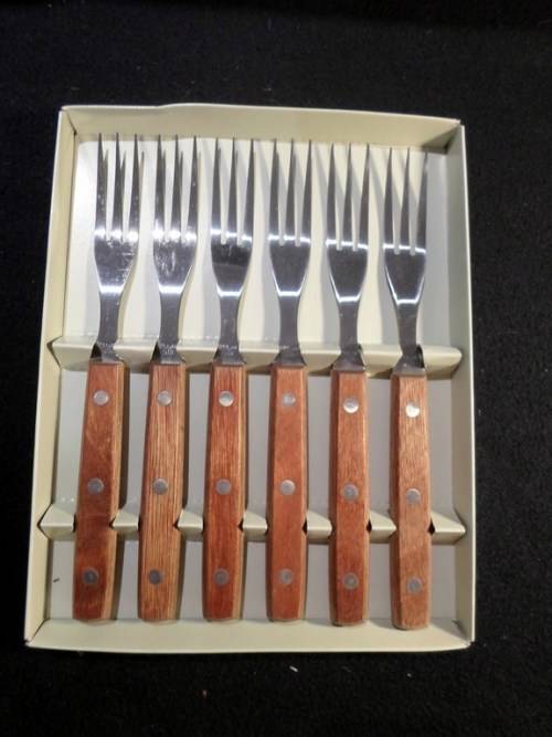A Stunning set of Stainless Steel Steak Forks and Knifes, 6 Forks (20cm) and 6 Knifes (25cm). They are in excellent condition and will make a lovely addition to your home. Own them today. Bid now!!