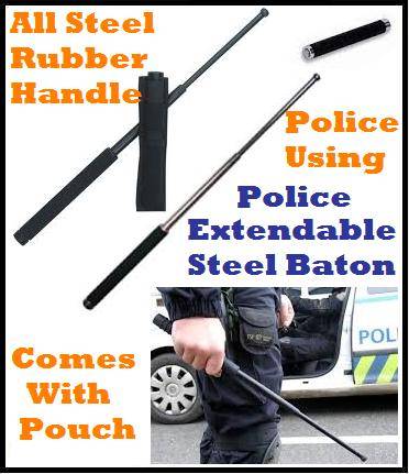 Steel Baton as Used by the Police Extends to around 49cm Long. Handle has a rubber base to prevent slip and all parts and piping is steel made. Ideal for Walking In Parks and Car Protection when needed