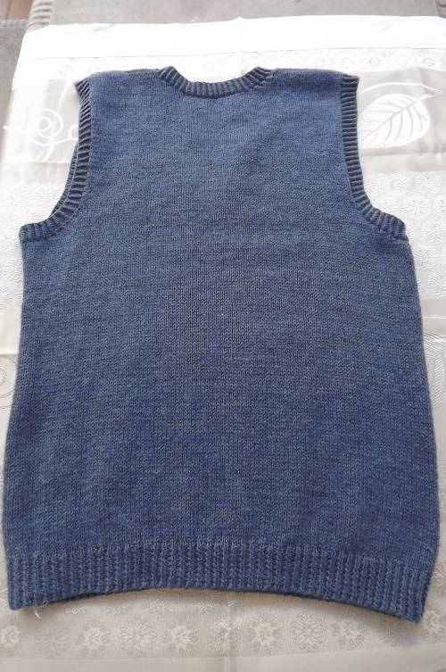 Steelblue acrylic knit sleeveless pullover with v neck.Handknitted.Size Small.Chest 100cm