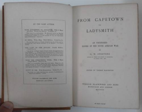 Steevens, G.W; 'From Capetown to Ladysmith; An Unfinished Record of the South African War'