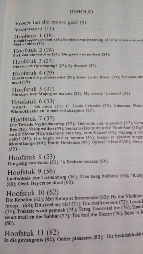 Boek is in Afrikaans en bespreek die lewe van Nicolaas (Siener) Van Rensburg en die invloed hy oor die Boerevolk gedurende die Boereoorlog gehad het, saam met blykbare menings oor ons huidige tydperk.
