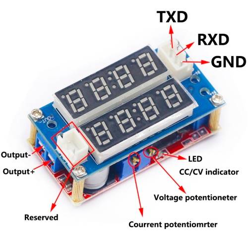 -Adjust the “voltage potentiometer” so that the output voltage reaches the value you want.