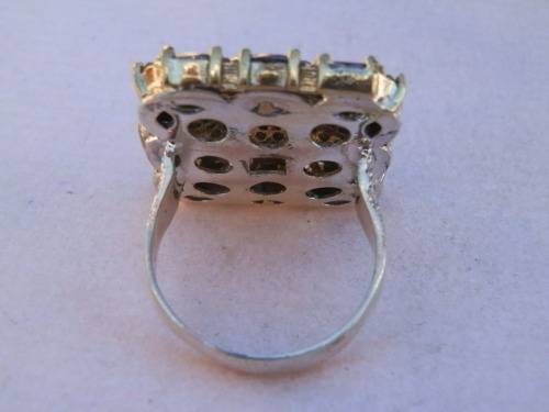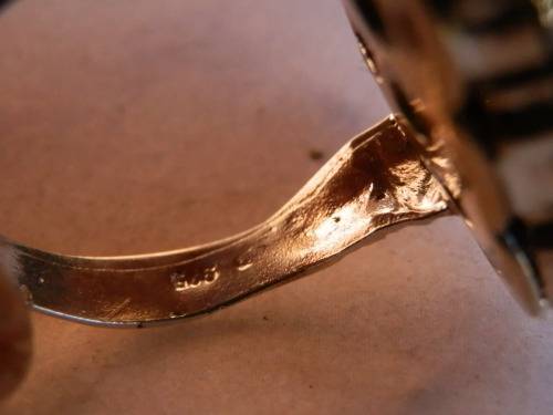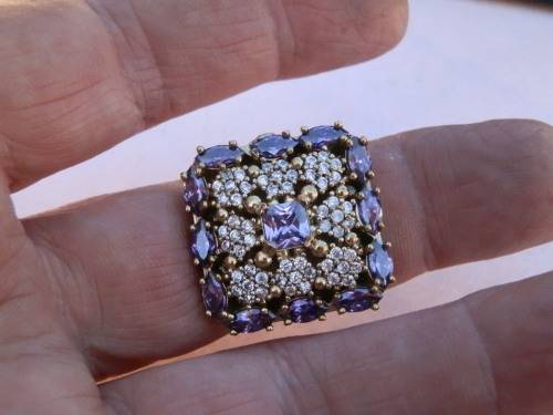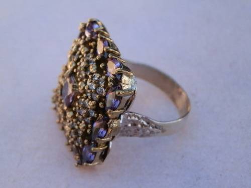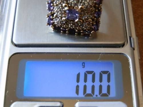 Sterling silver amethyst ring with bronze accent, marked 925 and in good as new condition. The size is Q / 8.5, top width 24 mm and the weight 10 g. The stones are not guaranteed as natural.