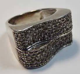 Sterling silver and diamanté ring - 11,2 grams - Size N
