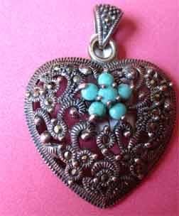 Beautiful 925 Sterling Silver Marcasite and Turquoise Pendant