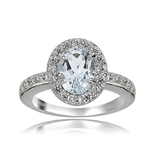 This attractive sterling silver halo ring features an oval 8x6mm aquamarine gemstone surrounded by smaller white topaz gemstones. The total gem weight is 1.25 carats.Ice Gems Offers Beautiful Gemstone Jewelry Each Item is backed by a 30 Day Money Back Guarantee, No Questions Asked Each Item is packed in a nice jewelry pouch