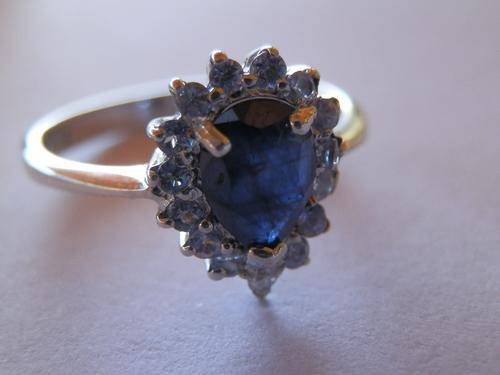 Sterling silver blue sapphire and white topaz cluster ring, in good as new condition