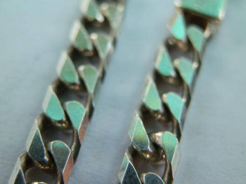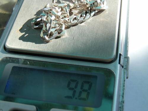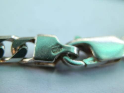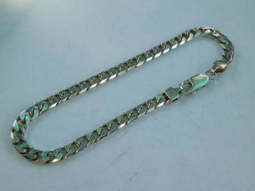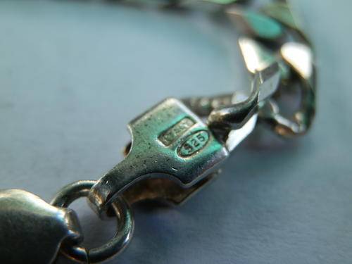 Sturdy sterling silver bracelet, marked 925 and in a good condition. The length is 20.5 cm, width 5 mm and the weight 9.8 g.