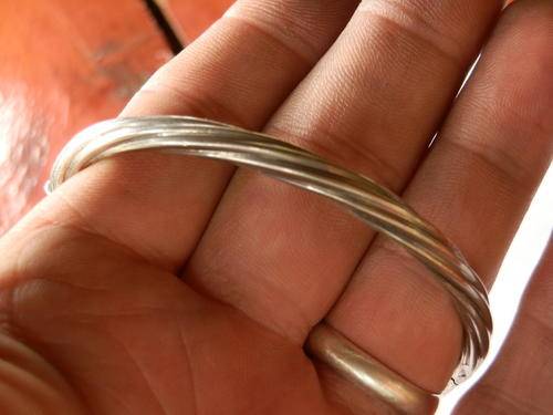 Sturdy and lovely sterling silver bangle, tests positive for sterling silver, in good condition. Please not the bangle can not open. The inner size is 5.3 x 6.1 cm, the width 4 mm and the weight 11 g.