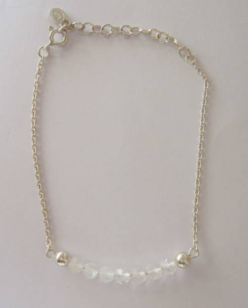 Sterling silver bracelet with quartz crystal beads.