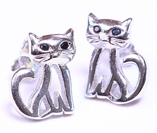 Sterling Silver Cat Earings with Black Cubic Zirconia Stones