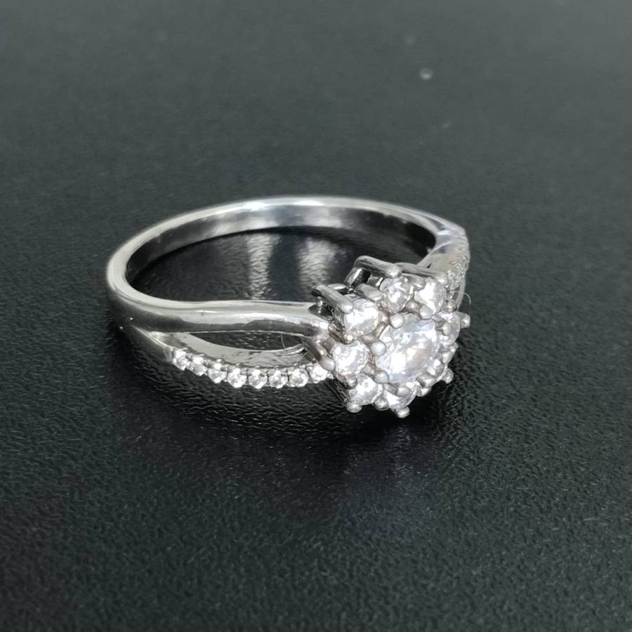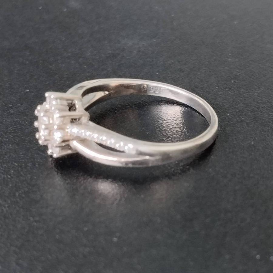 Sterling Silver Claw Set Cubic Zirconia Double Cluster Flower RingĀ