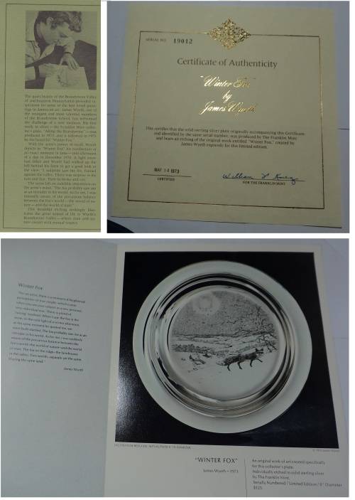 Sterling Silver Collectors Plate: "Winter Fox" by James Wyeth