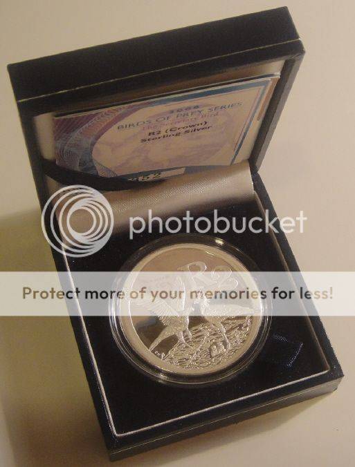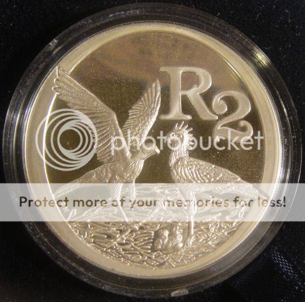 These huge coins are 38.70 mm in diameter, weighs 33.626 grams, and was struck in 925 Sterling Silver in Proof condition by the South African Mint in 2006.