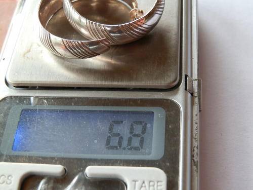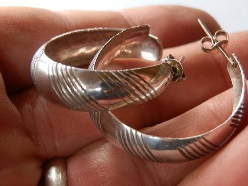 Sterling silver hoop earrings, marked and in good condition.  The diameter of the earrings is 28 mm, the width 9 mm and the weight 6.8 g.