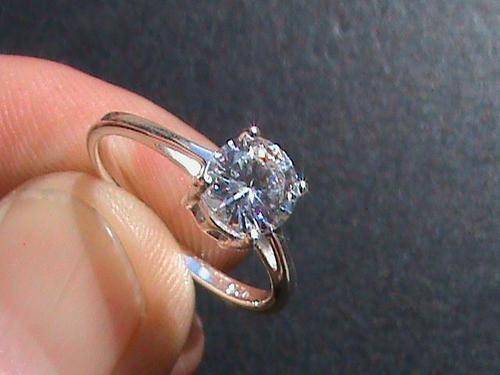 STERLING SILVER ENGAGEMENT RING, WHITE CUBIC ZIRCONIA STONE.    SIZE L 1/2
