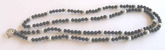 It is a black onyx and fresh water pearls necklace, round 2.50 mm onyx and white fresh water pearls in between ,